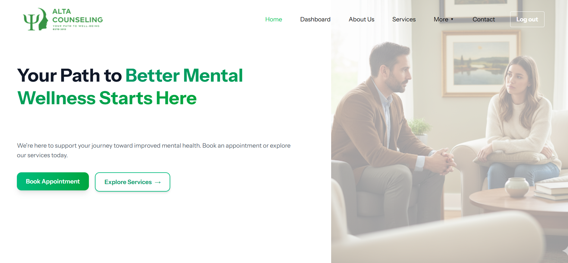 Worked as a Backend Developer at Alta Counseling, focusing on building and maintaining major services pages, therapist profiles, and integrating the admin dashboard for seamless management.